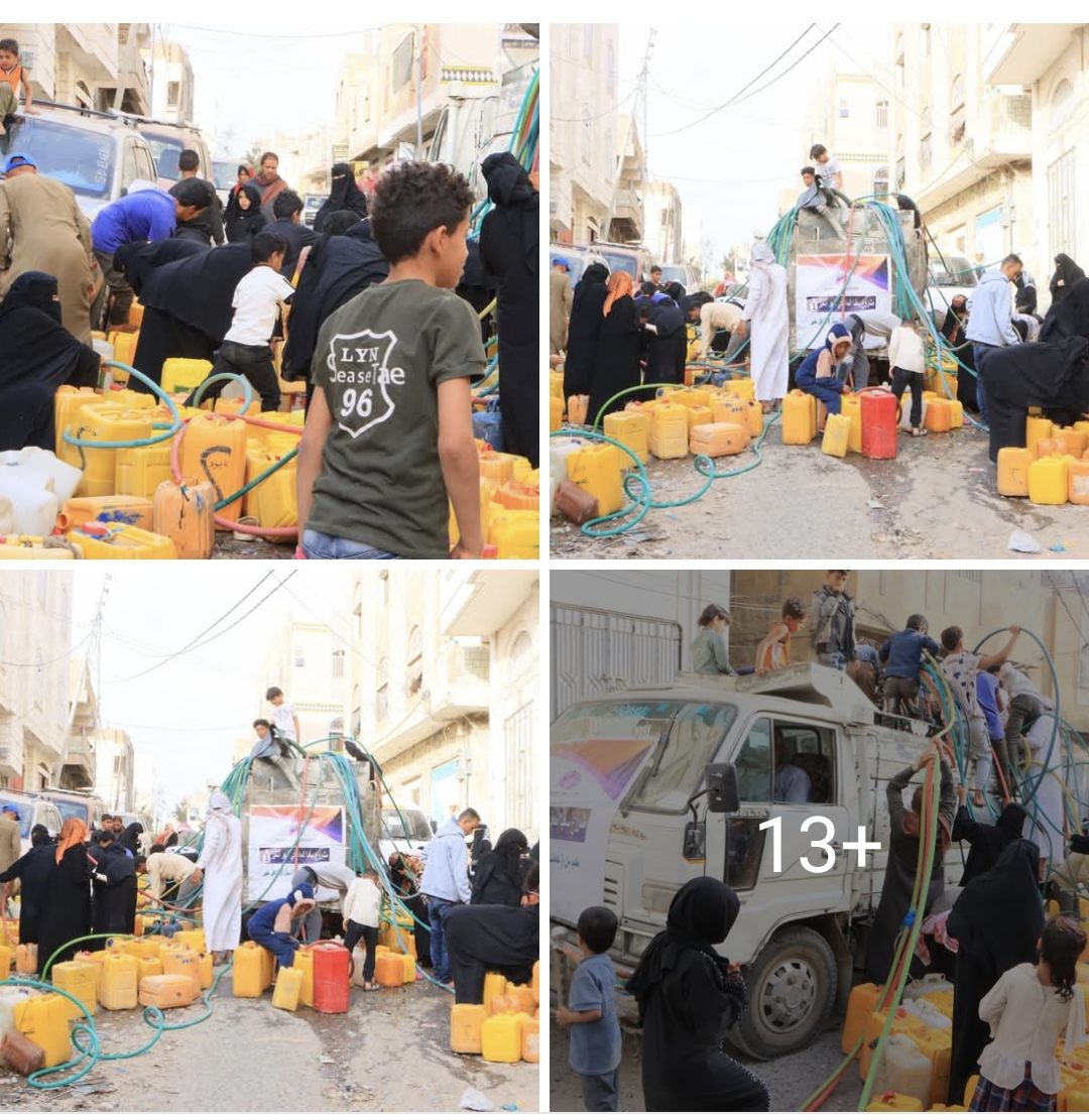مؤسسة خطوات للتنمية الإنسانية تزود أربعة أحياء وسط مدينة تعز بأربع ناقلات سقيا الماء سعة 6000 لتر الطاهش والقباطي ، حارة بقالة القدس،في الدحي حارة شارع الإمام في المطار القديم.