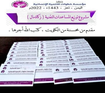 مشروع توزيع المساعدات النقدية (زكاة)Khotwat Orgأبريل 20, 2022وفرج قادم من صوب النبيل إبن صعدة ، فيه تنفيس عن حالات عدة عبر خطوات للتنمية الإنسانية في مدينة تعز ... اقرأ أكثر