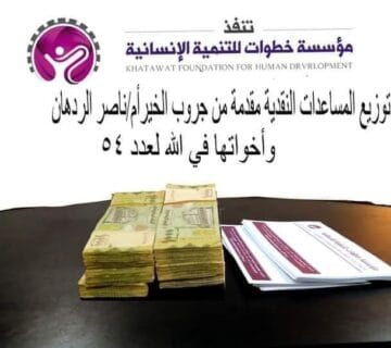 مساعدات نقدية..Khotwat Orgيناير 3, 2022( 540,000) كانت فرحة ل54 شابا ً من غير مصدر دخل، بواقع ( 10,000)لكل واحد ٍ منهم ، لفتة لطيفة ... اقرأ أكثر