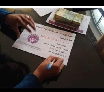 مساعدة زواجKhotwat Orgفبراير 7, 2019سلمت مؤسسة خطوات للتنمية الإنسانية هذا الصباح 7/2/2019 مبلغا وقدره مئتا الف( 200000) ريال لجريحنا يوسف الدهش وذلك مساعدة منها ... اقرأ أكثر